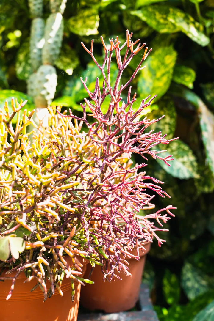 Verso il fondo si incontra una pergola di kiwi e una bella varietà di rosa antica, la rotonda e fitta Pierre de Ronsard. Sempre vicino al muro di cinta si trova il vero pezzo forte del giardino: la stupefacente collezione di piante grasse e succulente. Sui ripiani in legno si raccolgono esemplari dalle forme più strane e diverse: appuntiti, carnosi, bombati, verticali come obelischi pagani, attorcigliati come viscere, esplosi in frattali di deliziosa geometria vegetale.