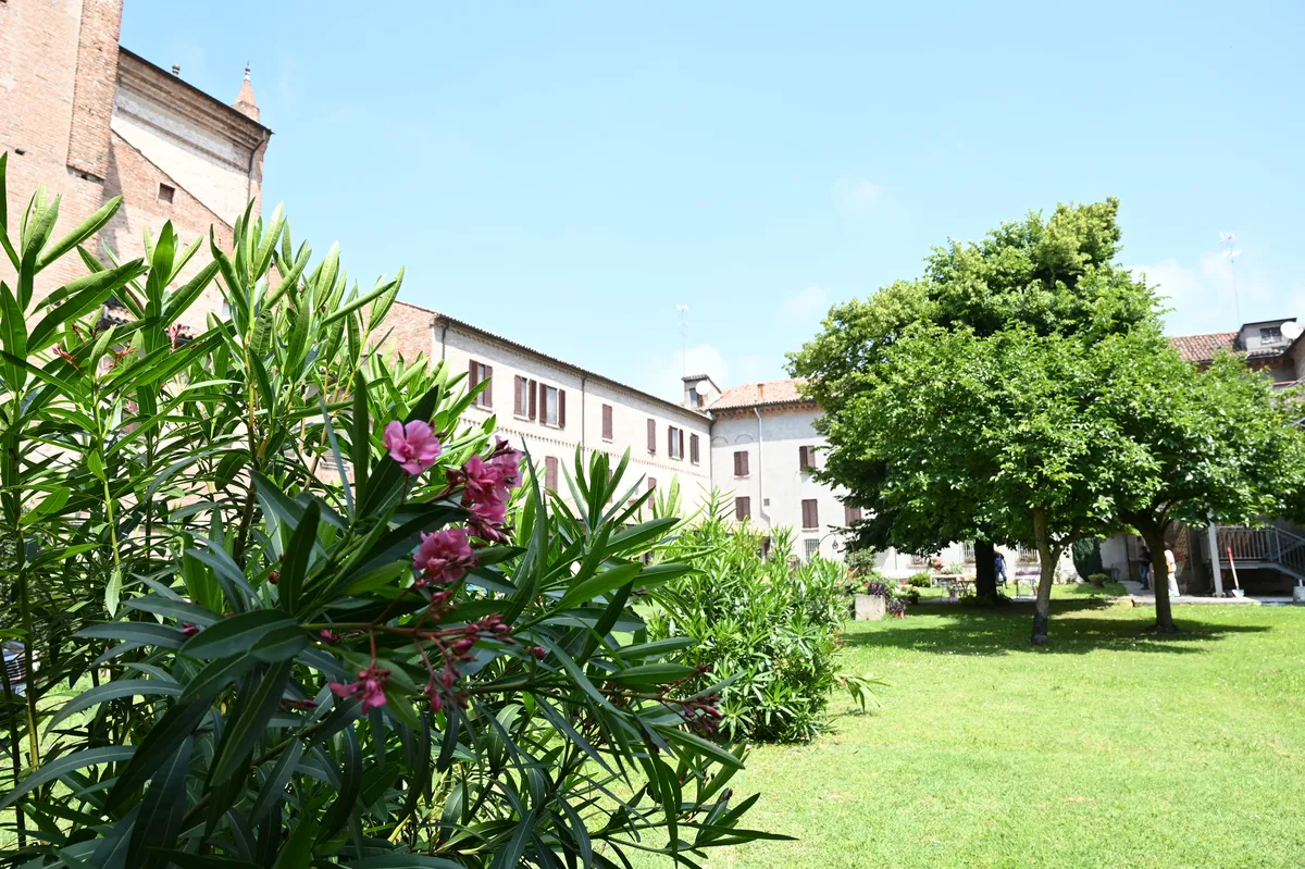 L’ampio giardino a cui si accede da via Renata di Francia si riferisce alla struttura Beata Beatrice d’Este, affacciata sul trafficato Corso Porta Mare. Nulla dalla strada fa supporre un così grande e tranquillo spazio verde.