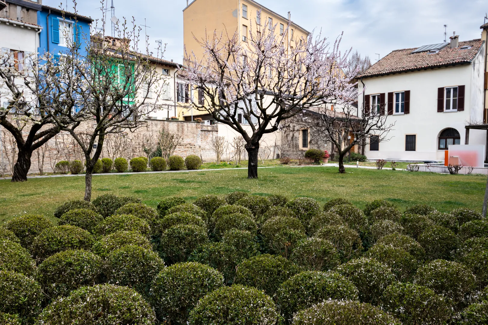 Se poi a monte vi fosse davvero la volontà di aiutare la popolazione a vivere in condizioni di maggiore agio, o se piuttosto si intendesse addomesticare e indebolire lo spirito battagliero dei residenti, è una questione che vale la pena approfondire, magari recuperando il catalogo della bella mostra organizzata nell’inverno 2022 a Palazzo del Governatore, intitolata “I Capannoni a Parma. Storie di persone e di città”. Considerati gli espropri e le distruzioni che hanno coinvolto questo brano di città, è facile immaginare che il grande giardino di Borgo Bosazza sia frutto di un abbattimento. Come altrimenti avrebbe potuto resistere uno scoperto così grande, in una zona altrimenti tanto fitta?