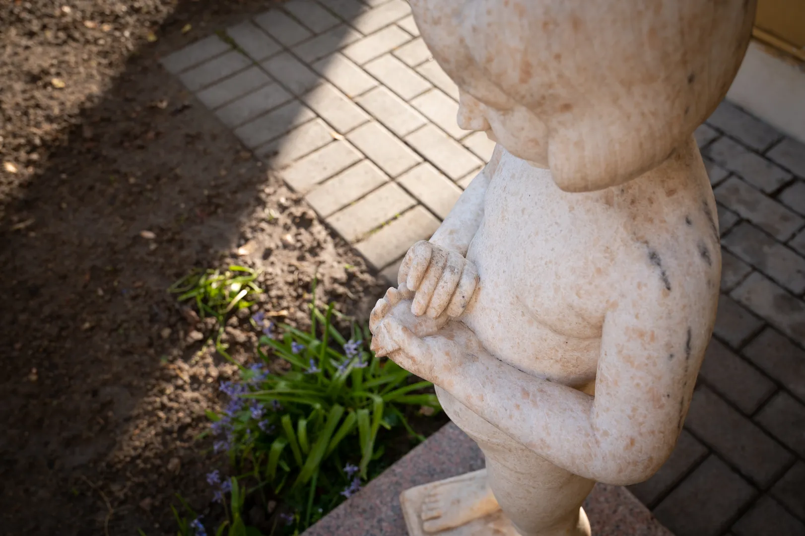 Vicino a loro c’è la statua di una bambina, che chiude tra le mani un piccolo pesce. L’opera viene dalla riviera toscana. Fu realizzata da Nerone Ceccarelli, artista vicino al gruppo Novecento, per desiderio della moglie di Tazio, che avrebbe sempre voluto avere una figlia. Le rose che crescono accanto al manufatto sono uno dei pochi ricordi vegetali che si possono attribuire a Nuvolari. Gli altri alberi e arbusti presenti sono stati piantati successivamente, soprattutto negli anni Ottanta.Da notare, in fondo a sinistra, un poco comune papiro.