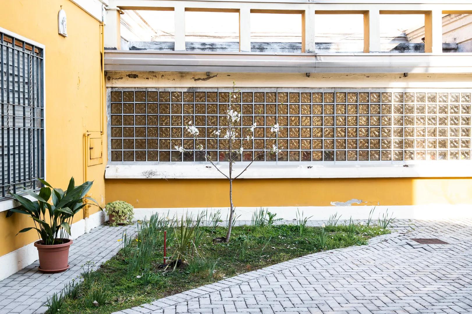 Eppure basterebbe evadere dalle proprie distrazioni per un secondo, gettare un’occhiata appena più attenta per capire che non si tratta solo e semplicemente di un villino giallo. Ha forme sinuose, quasi aerodinamiche. E quei finestroni vuoti sopra il muro di cinta? Sicuramente qui l’architetto ha speso tempo e fantasia, altrettanto sicuramente chi ha voluto questa abitazione non era persona da accontentarsi, da desiderare ciò che tutti desiderano.