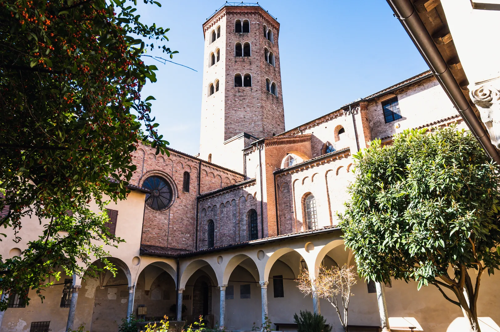 Ricostruire la storia del complesso dedicato al patrono di Piacenza… è complesso. Costruito prima dell’anno Mille, col passare dei secoli è stato oggetto di accorpamenti e aggiunte. Le originali fattezze romaniche sono state parzialmente recuperate grazie al coraggioso restauro operato tra il 1915 e il 1930 da Giulio Ulisse Arata. Precedettero l’intervento anni di studi e di rilievi: l’architetto condusse analisi rigorose per scoprire l’essenza dell’edificio. Forte della credenza che «il restauro è anche, e soprattutto, un fatto critico», Arata volle eliminare gli elementi giustapposti, che definiva più gentilmente «ingessature ottoceschesche», e meno gentilmente «sovrapposizione degenerative di un falso barocco inutilmente pomposo». Rimosse il tamponamento degli archi affacciati verso il chiostro menomato, che era stato effettuato per inserire delle nuove cappelle laterali dentro alla chiesa, riuscendo così a ripristinare parzialmente il porticato. Sfruttò la presenza di alcune preesistenze per realizzare la nuova canonica, in mattoni a vista. Disegnò ex novo il giardino quadrato, con una vera da pozzo ottagonale al centro.