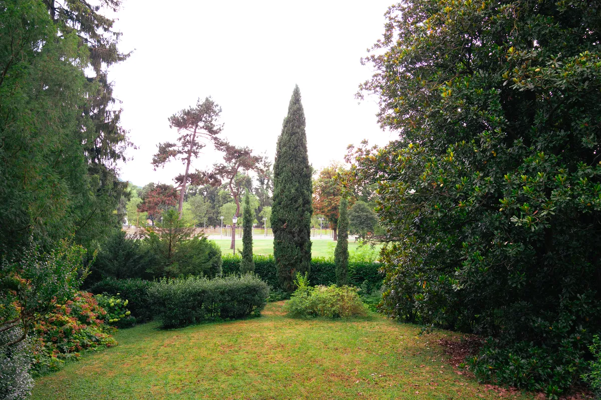 Il giardino si sviluppa su più livelli. Al primo, il più alto, sicuramente vale la pena notare il meraviglioso glicine, affacciato sulle Olea fragrans. Scendendo si incontrano i tassi, le clivie e gli iris. L’abitazione è stata costruita agli inizi del Novecento: all’epoca il parco era diverso, c’era un prato circolare circondato da una siepe di bosso. In tempi più recenti si è voluto ricordare quel disegno con l’inserimento di altre piante e arbusti, che talvolta esondano dalla circonferenza ideale, come l’ingombrante, bellissima ortensia quercifolia sulla sinistra. Il fondo ora come allora è chiuso dai cipressi, salutati dalla solenne magnolia che cresce sulla destra. Vale la pena inoltrarsi sotto la chioma, sembra di trovarsi in una di quelle casette segrete che da bambini si costruivano sotto gli alberi, per sentirsi protetti e nascosti.