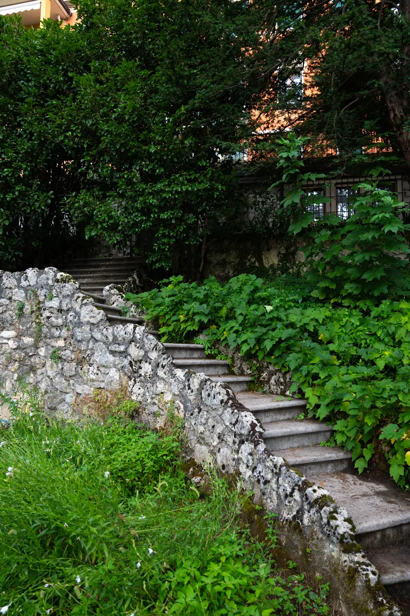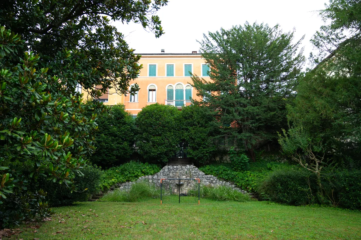 Non c’è da stupirsi dunque se per raggiungere il giardino della bella villa al civico 44 bisogna scendere degli scalini: si entra dalla strada, quindi dall’interno delle vecchie mura, e si scende all’esterno. Nemmeno c’è da stupirsi a incontrare alberi tanto grandi e belli. Una volta sotto la struttura difensiva correva l’acqua di un fossato, che si scaricava a Ponte Furo: il corso è stato interrato ma la vegetazione continua a beneficiare di questo invisibile e umido sentiero sotterraneo.