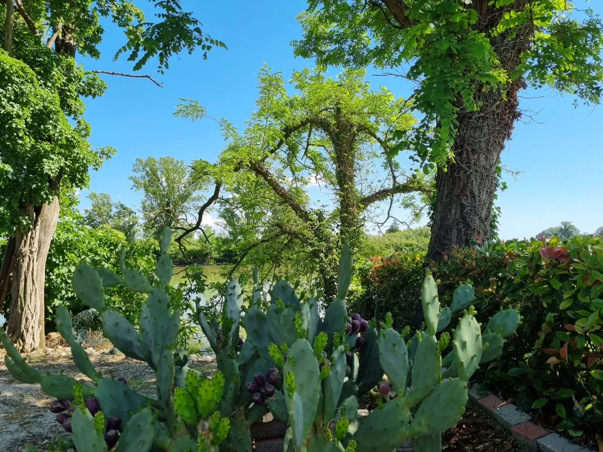 Oltre la siepe di fotinia e oltre il cancelletto, ingentilito dal gelsomino, si apre la seconda porzione del giardino, con l’area coltivata ad orto, il magniloquente fico d’india, l’agave e la quercia. Il fondo è chiuso dalla vegetazione spontanea, ingombranti alberi fronduti e un declinare di canne palustri. Fino a poco tempo fa qui si trovava anche il pollaio, con otto galline e due galli, ma purtroppo il passaggio della volpe non ha lasciato scampo a nessuno. Da non perdere la doppia terrazza, da cui ammirare il romantico panorama agreste. La prima, quella più bassa, viene spesso e volentieri utilizzata come postazione da pesca, per catturare gobbi, persici e talvolta anche anguille. La seconda è quella panoramica, perfetta per scattare delle belle foto ricordo al tramonto.