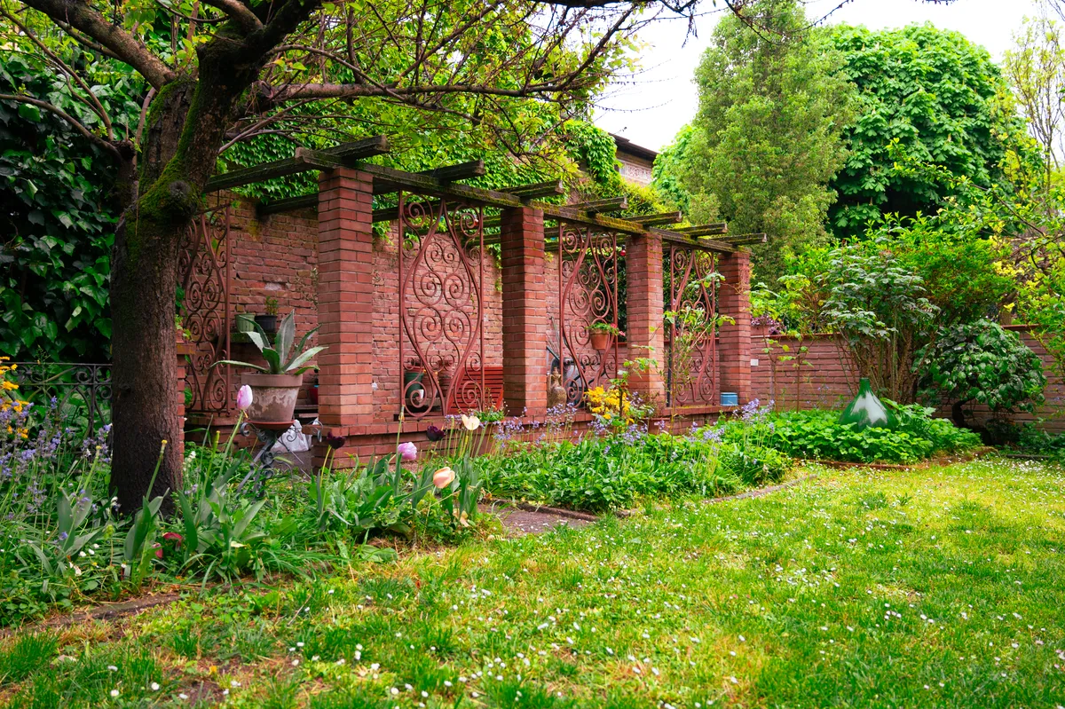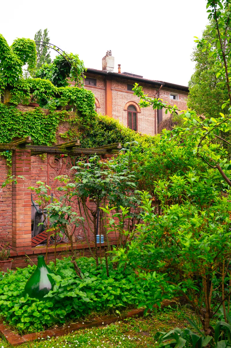 Il villino al civico 5 apparteneva al nonno dell’attuale proprietaria, che l’avevo ottenuto in quanto mutilato di guerra. Nel suo giardino convivono residenti più anziani, come il ciliegio, e amici più giovani, come la bella cycas, la forsizia, le rose, il banano e l’agave in vaso, il calicanto. Il prato è denso di violette e giacinti selvatici.