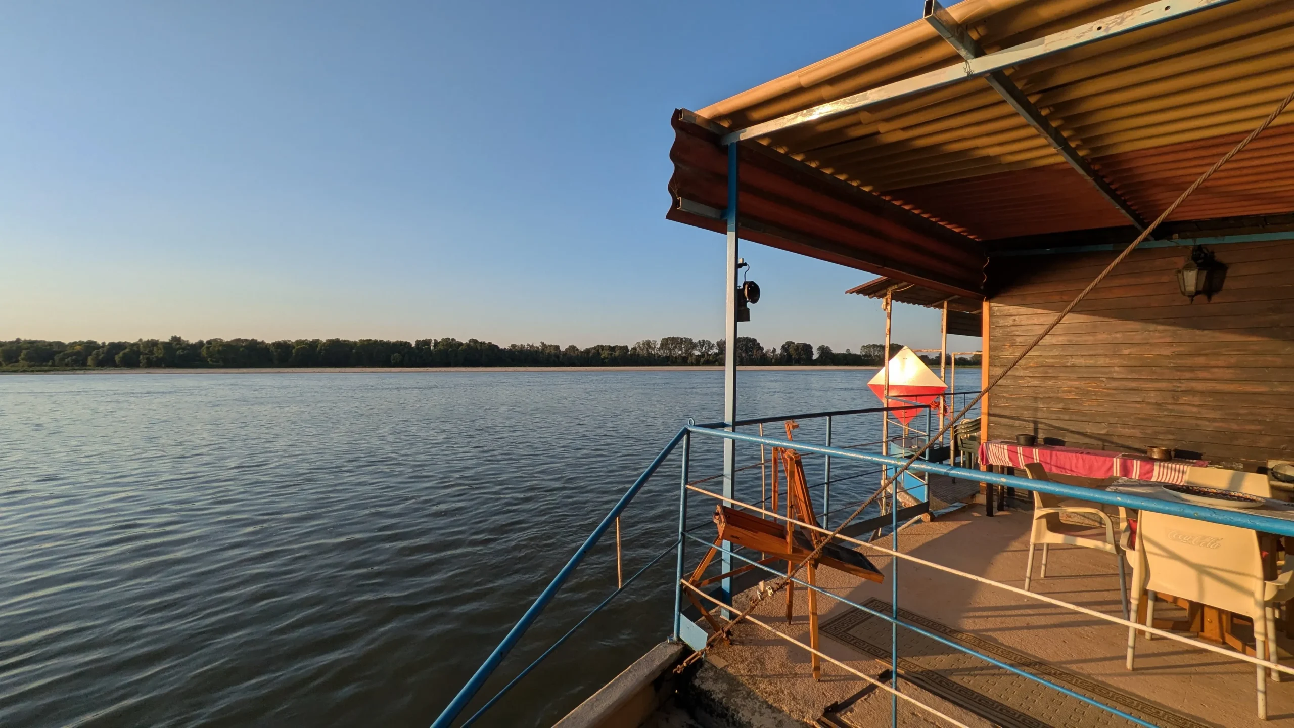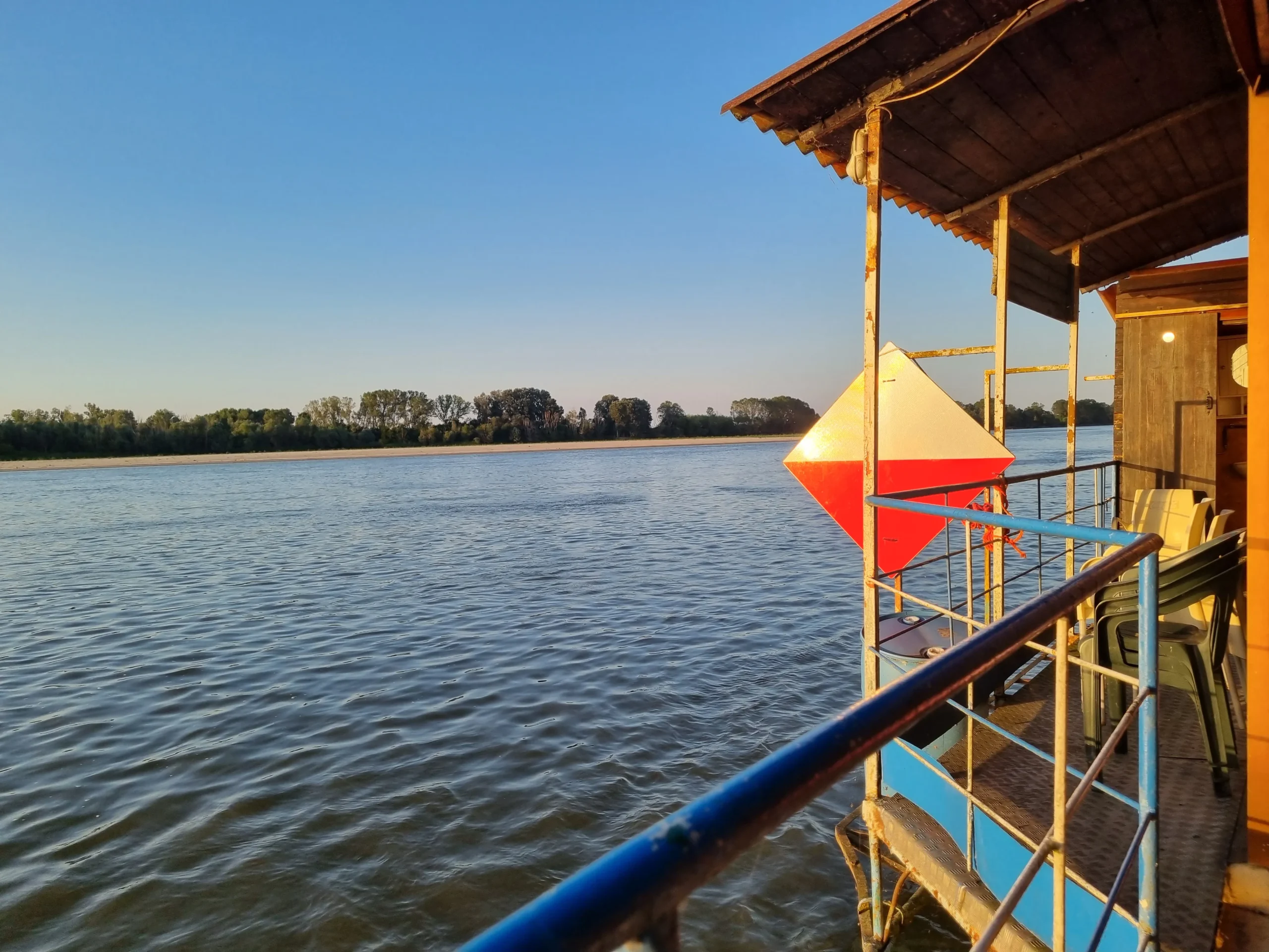 Questa piccola ma confortevole struttura si appoggia su due grandi scafi di cemento, simili in tutto e per tutto a quelli che sorreggono i pochi ponti galleggianti rimasti operativi sul Po. Oggi è una postazione della memoria e un punto di incontro, aperto ai curiosi, a chi vuole fare due chiacchiere davanti al tramonto, a chi non ha paura di avvicinarsi e domandare: c’è qualcuno qui? Può essere che non ci sia nessuno, ma se c’è qualcuno… è garantita la più calorosa, interessante e gustosa ospitalità.