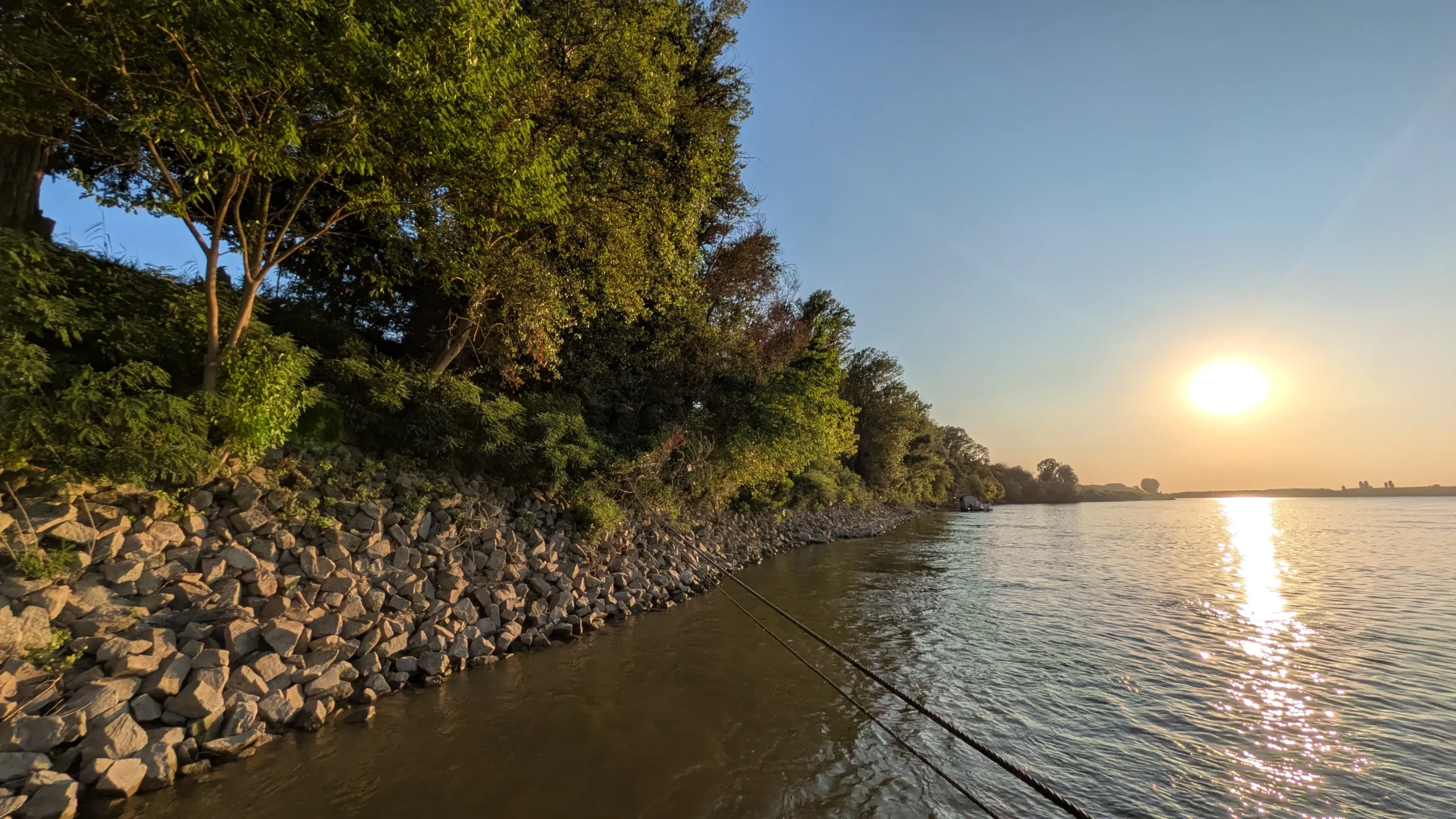 Prendendo come punto di riferimento la villetta verde oliva, basta salire il terrapieno e camminare pochi passi per trovare un esempio di come l’acqua, le intemperie e la vegetazione riescano a disintegrare ciò che sembra solido e sicuro: appena sotto l’argine si incontra una vecchia struttura in rovina, con gli alberi che sbucano dalle finestre, i mattoni crollati e una esuberante catalpa che fa bella mostra di sé, in mezzo alle rovine. Questo è un ottimo spot fotografico per gli amanti del gusto romantico, in senso proprio ed ottocentesco, ma guai ad avvicinarsi! A sinistra del rudere si trovano la scaletta in ferro e la passerella mobile che portano al barcone di Flavio, perfetta antitesi della costruzione mezza crollata. Perché opporsi solidi alla corrente che trascina via, se si può salire e scendere insieme alle onde?