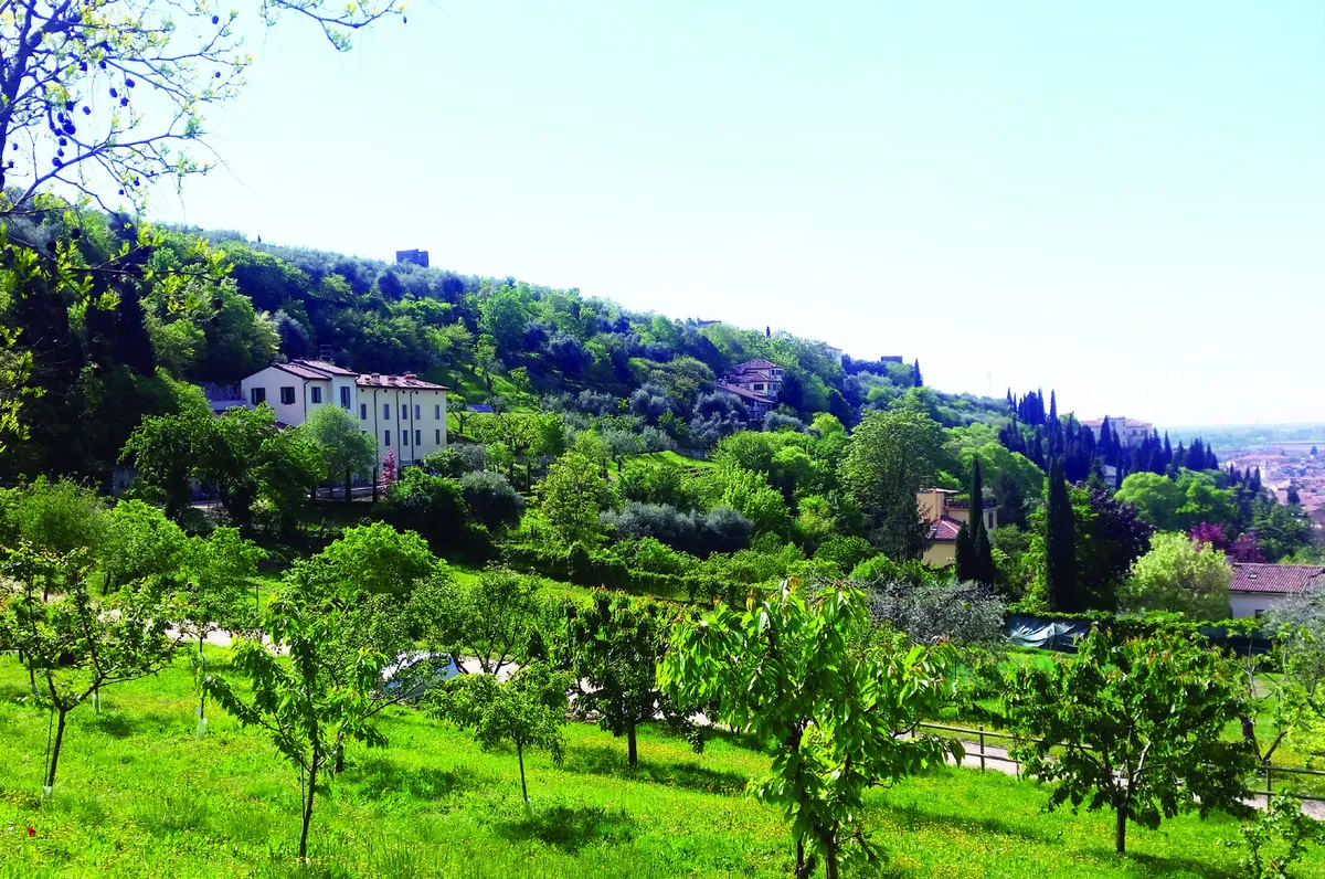 Immaginiamo di trovarci in questo stesso luogo un paio di secoli fa, quando tutto il largo tratto di collina era coperto di orti e di modeste abitazioni di contadini che producevano verdure e frutta da vendere in piazza Erbe.