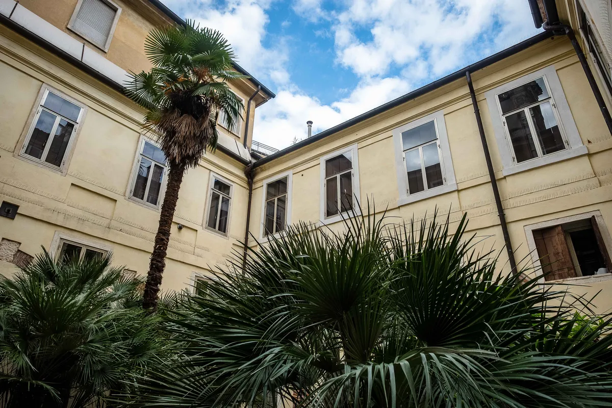 Nel 1835 l’immobile venne destinato a collegio femminile, per volontà del suo proprietario, il signor Nado, appoggiato e sostenuto in questa missione da un collegio di benefettatori. Lo stabile subì purtroppo un pesante bombardamento da parte delle truppe alleate durante la Seconda Guerra Mondiale. Dopo il restauro divenne la casa dell’Istituto, che oggi accoglie sale conferenze e uffici, una nutrita biblioteca e le aule dell’Università della Terza Età. Il cortile regala aria e respiro alla struttura, che lo conserva come una gemma preziosa: la sua fattura è seicentesca e sembra doversi riferire ad Antonio Pizzocaro. Al suo interno verdeggiano le palme, l’aucuba, l’aspidistra.