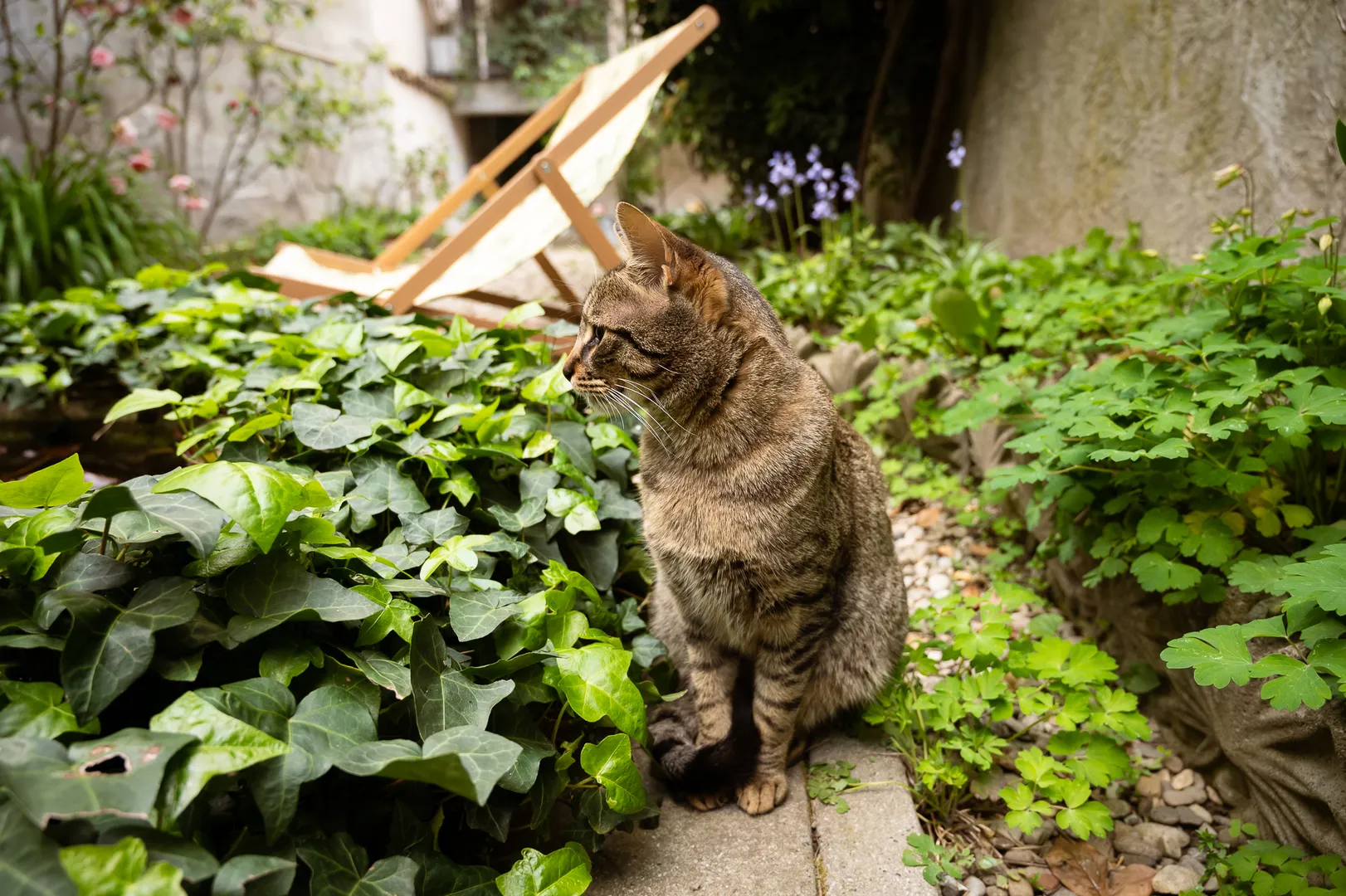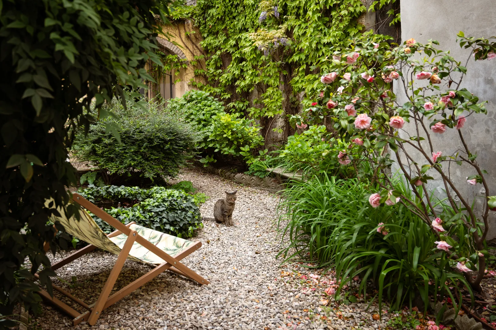 Non mancano tra i cespugli sepolture informali, riservate al riposo eterno degli animali domestici. Il gatto Tigro – ultimo di una lunga tradizione – è arrivato durante il primo lockdown. Non ci ha messo molto ad eleggere la lonicera come propria esclusiva e privilegiata possessione: d’inverno si ripara dal freddo nascondendosi sotto l’arbusto, nella bella stagione si accovaccia in cima ai rami per controllare ciò che succede attorno.