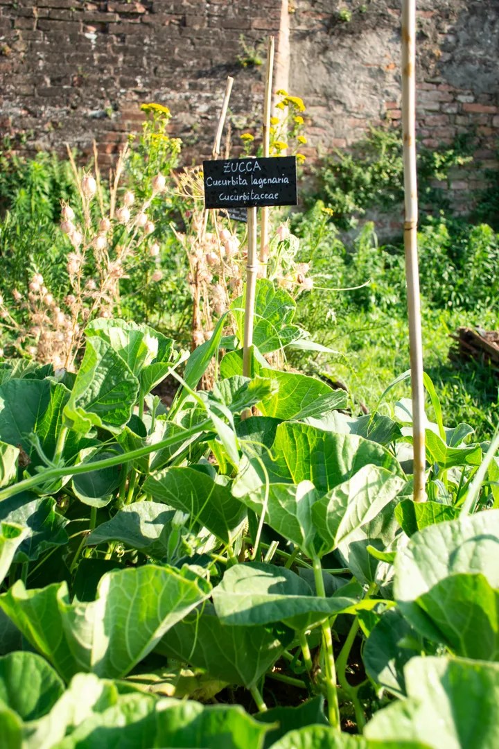 Nell’area sono state disposte quattro stanze, secondo uno schema ispirato al giardino dei semplici dell’abbazia svizzera di San Gallo. La prima parte è dedicata alla didattica e ai fiori. Nella seconda sono state allestite le prese, ovvero le aiuole regolari, sopraelevate e contenute da strutture in legno di nocciolo e vimini, ricche di verdure ed essenze, come il finocchietto selvatico, la malva e il prezzemolo.
