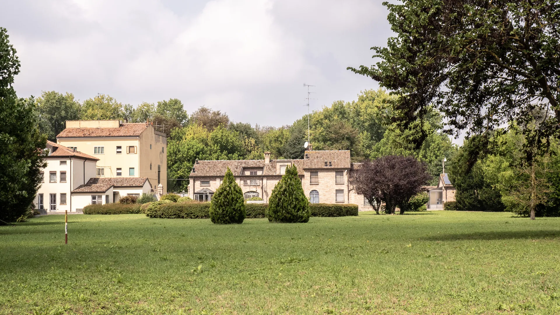 Dalla strada non ci si rende conto di quanto effettivamente sia grande questo spazio, ma la prospettiva si apre appena si superano le abitazioni e ci si trova di fronte a un prato di cui a malapena si scorge la fine. I nipoti raccontano che da piccoli, quando la famiglia acquistò la proprietà, chiamavano lo scoperto “il campo”, perché il terreno era completamente spoglio e abbandonato, ricco solo di infestanti. E tuttora sono abituati a chiamarlo così, anche se adesso l’erba è curata e punteggiata di arbusti e alberi, scelti prevalentemente tra le specie autoctone e più tradizionali. Assieme ai grandi classici — tigli, acacie, carpini, querce, aceri, scuri pruni selvatici — si incontrano anche pini marittimi, cedri del Libano e palme.