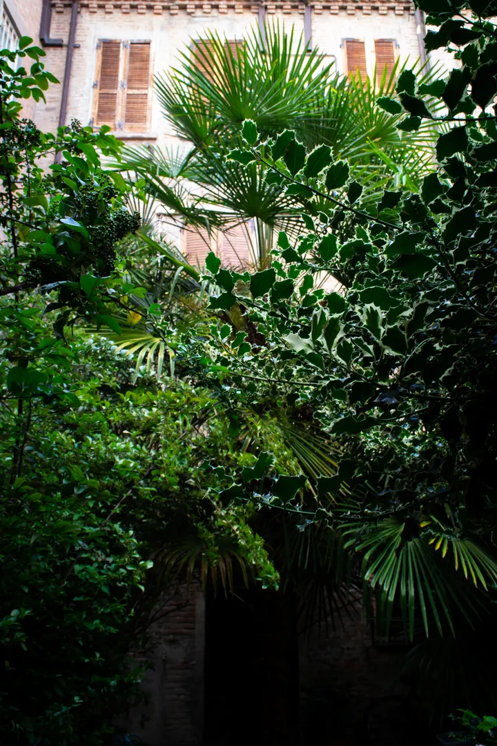 Oggi l’inaspettato angolo verde che si scopre attraversando l’accesso di via Spadari appare antico e ombroso, solcato da una serie di stretti percorsi che girano attorno agli oleandri e alla siepe di piracanta. In mezzo crescono le palme, il pungitopo, il fico e l’alloro. Sul muro di sinistra, sopra le ortensie, si notano due capitelli in pietra, di stile rinascimentale, e tre archi chiusi all’interno della parete, sovrastati da una bella rosa di terracotta.  Sulla destra, invece, c’è il recinto dove vivono le sei tartarughe del piccolo Tommaso.