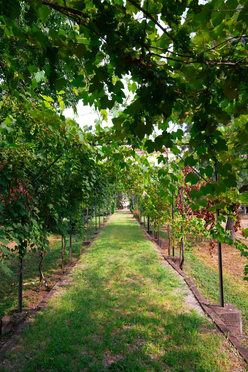 Dal cortile ci si inoltra nel parco, significativamente esteso e variegato, ricco di siepi e pergolati, prati e zone più ombrose e boschive. Gli alberi che crescono qui si possono dividere in tre categorie: alberi di rappresentanza, alberi destinati alla tavola e alberi simbolici. I primi sono esemplari esotici, come i cedri dell’Himalaya e dell’Atlante, gli aceri e le magnolie giapponesi, il ginkgo, l’ailanto.