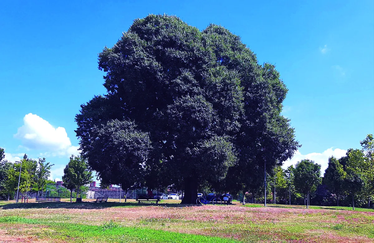 Il parco è nuovo e la vegetazione arborea è ancora giovane, a parte un grande bagolaro, detto comunemente spaccasassi, evidentemente preesistente. Lungo i bordi vi sono siepi miste con fioriture scalate durante tutto l’anno.