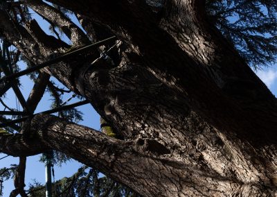 L’installazione si integra e interagisce con l’ambiente, è diventata parte dell’ecosistema. Il verde del sedum si fonde col manto erboso, ai piedi del monumentale Cedro del Libano. Esplicita il rapporto tra albero, archivio ed emozione. Connette artificio e natura: la struttura della gabbia sorregge organismi vivi e decisamente vegeti, in evoluzione, come la struttura dell’archivio conserva e protegge i sentimenti, anch’essi vivi e in movimento continuo. Il dispositivo è fisicamente e simbolicamente radicato: le radici sono le fondamenta di una pianta ma anche sinonimo, per gli esseri umani, di origine, appartenenza al territorio e alla sua comunità.