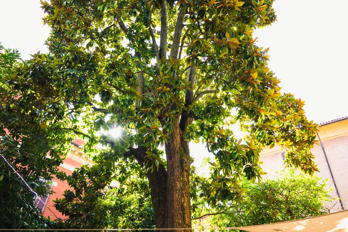 Vox populi vuole che l’imponente magnolia centrale, la stessa che si vede svettare all’angolo tra via Ugo Bassi e via Cisterna del Follo, sia il celebre esemplare descritto da Giorgio Bassani nella poesia Le leggi razziali: «Costretta fra quattro impervie pareti / piuttosto prossime crebbe / nera, luminosa, invadente, / puntando decisa verso l’imminente cielo / piena giorno e notte di bigi passeri».