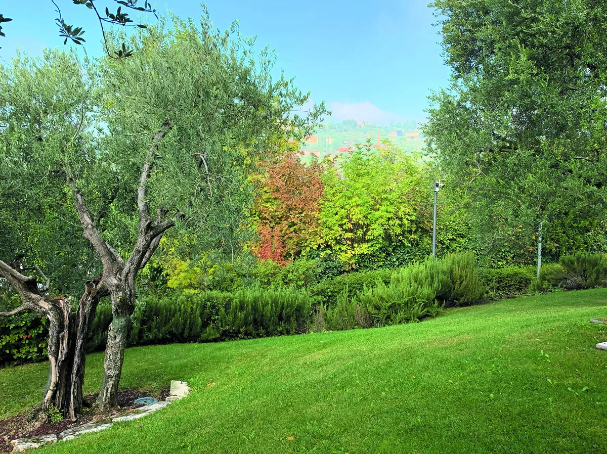 Nella scarpata a Sud Ovest, un boschetto di ulivi secolari si mescola armoniosamente con alberi di fichi, cachi e giuggiole, creando un ecosistema che regala ombra e frescura durante l’estate. L’aria è percorsa dal profumo inebriante del gelsomino, mentre le piante di melograno si fanno notare per i loro colori vivaci. Nel retro si trova una piscina d’acqua salata, soluzione scelta per ridurre l’utilizzo di prodotti chimici, e un orto biologico offre prodotti freschi e genuini. Ortensie, rose e cespugli di aromatiche completano il quadro di un giardino che non solo incanta, ma che è anche un luogo di produzione sostenibile.