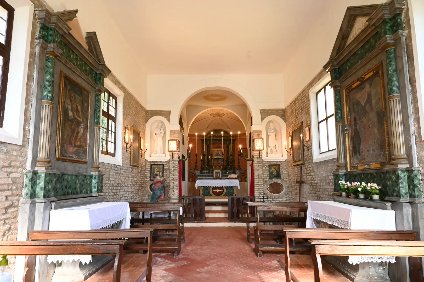 Immerso nella campagna ferrarese, a pochi chilometri dalle mura, nel 1650 all’interno della parrocchia di Quacchio, i conti Crispi fecero costruire un oratorio dedicato alla Natività della Beata Vergine Maria, che venne identificato dalla popolazione con il nome della proprietà in cui era inserito: La Crispa.