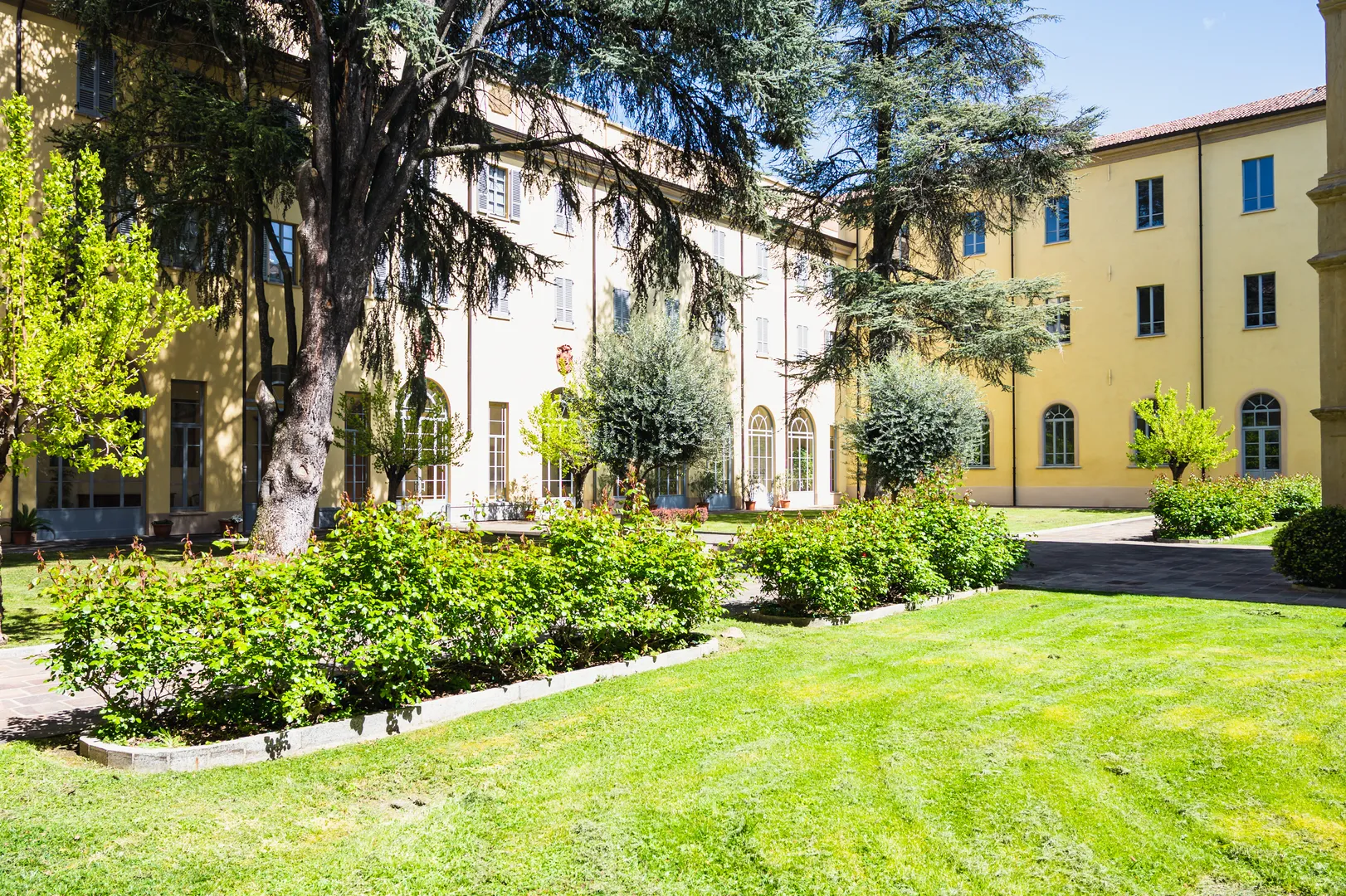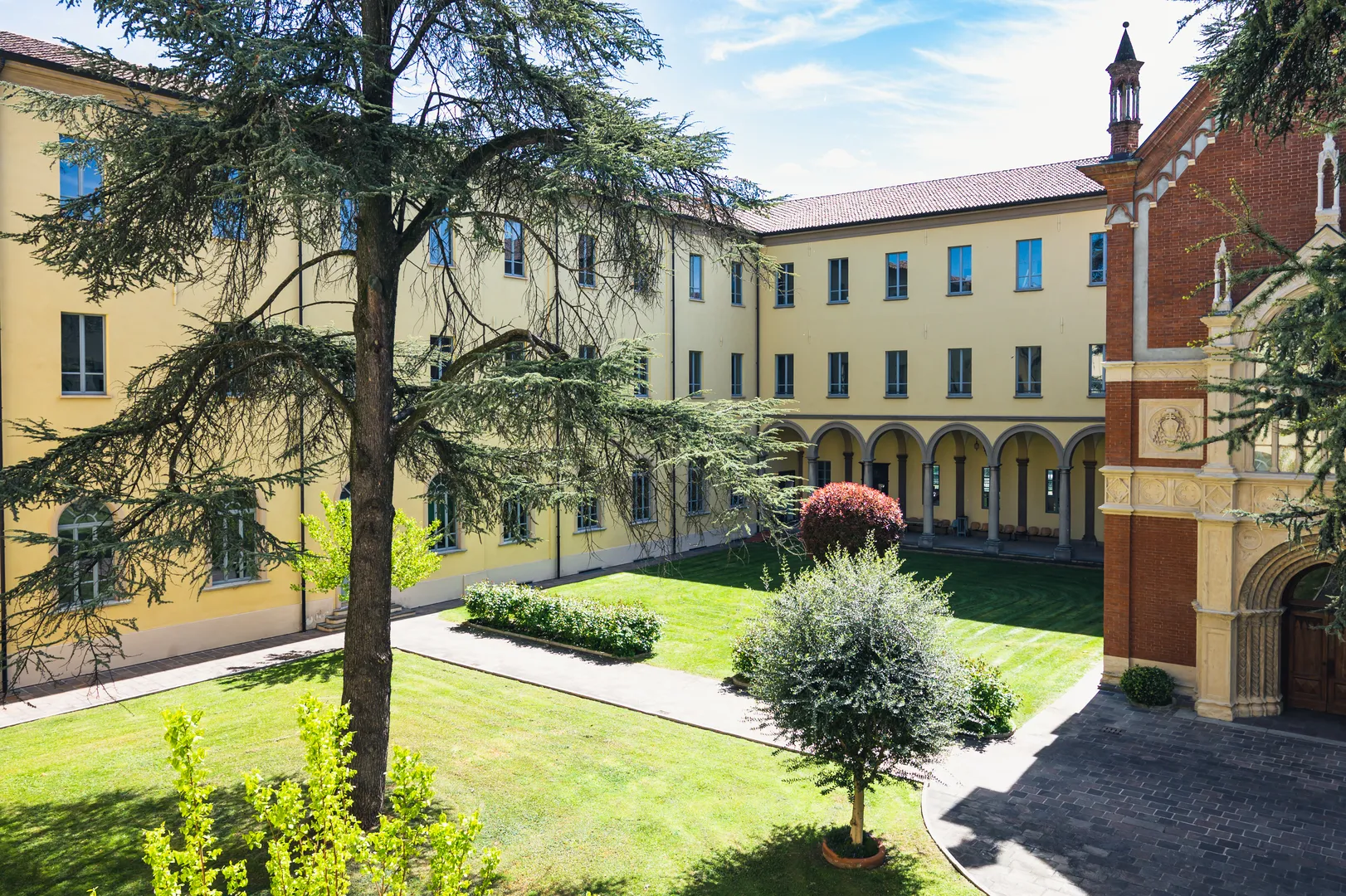 Magari cambiano i materiali, variano le scale di grandezza, si semplificano o si complicano le decorazioni, ma il prototipo resta nitido: area scoperta quadrata tenuta solitamente a prato, occasionalmente dotata di alberi e arbusti, circondata da un convento attivo o rifunzionalizzato, di base porticato.