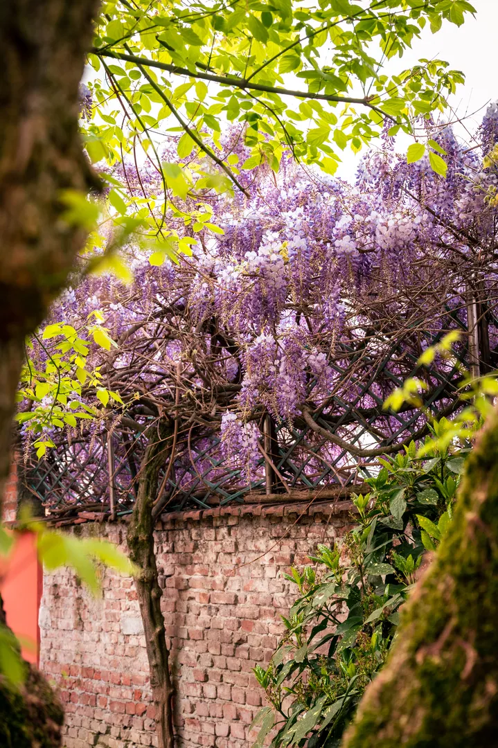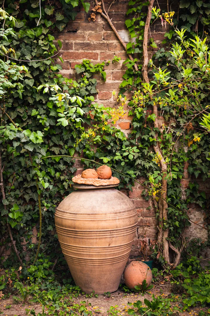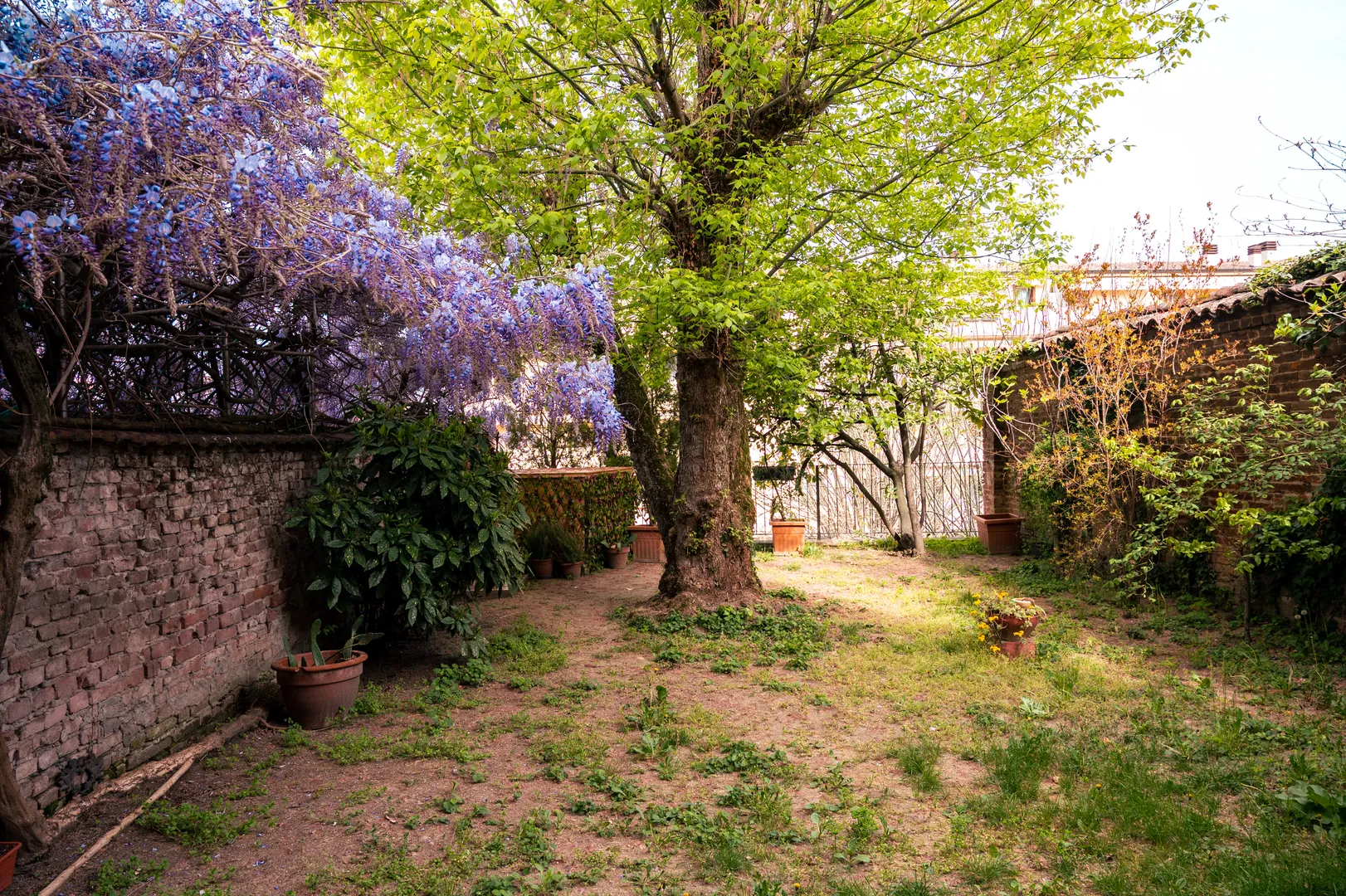 La particolarità del grazioso angolo verde di vicolo Cortazza è proprio questa: a fare da quinta agli alberi e agli arbusti non ci sono case e palazzi, ma direttamente il cielo. L’acero che cresce vicino al parapetto – amatissimo genius loci, custode della casa – può guardare davvero dall’alto in basso le verdure che crescono negli orti sottostanti, e farsi ammirare in tutta la sua bellezza dai vicini che abitano nel condominio di fronte, al terzo piano.