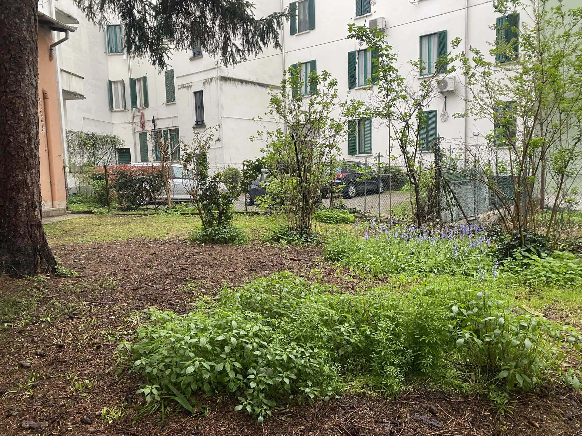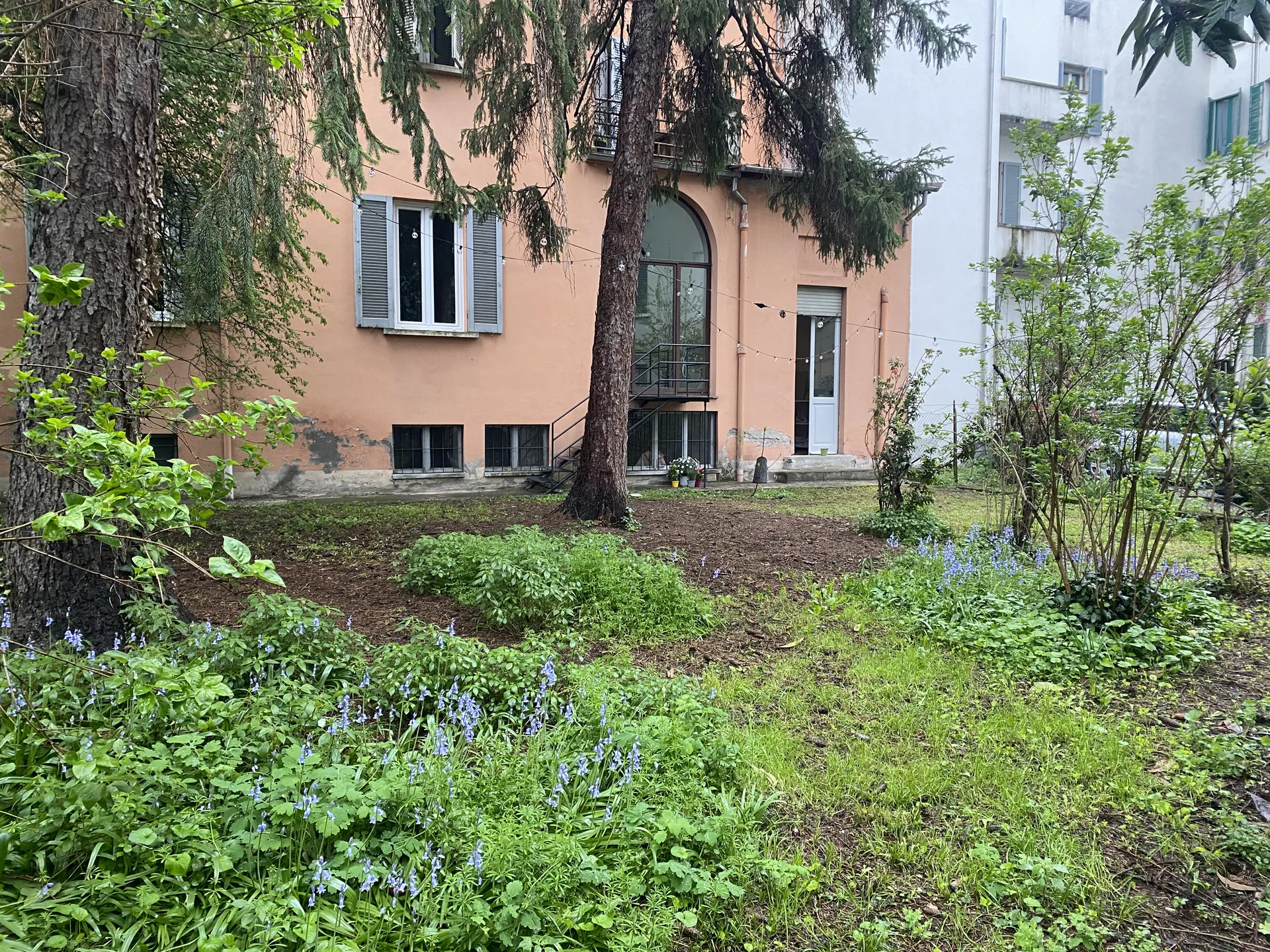 La loro avventura professionale è iniziata nel 2020 ed è cresciuta tra le postazioni del coworking On / Off. Dallo scorso maggio lo studio ha affittato nel quartiere Oltretorrente, all’interno di un caratteristico condominio anni Settanta, “una stanza tutta per sé”. La sede comprende gli ambienti di un vecchio negozio, con la vetrina affacciata sulla strada, e il relativo giardino, con accesso esclusivo. Qui crescono due abeti rossi, un pruno, un piccolo fico, la rosa, la mahonia e il lillà. A terra tanti giacinti selvatici, fiori gialli di celidonia insieme le immancabili violette di Parma. L’area, che versava in uno stato d’incuria e abbandono, oggi sta trovando nuova vita: è stata pulita e allestito, dotata di luci e resa più confortevole e accogliente. L’obiettivo è che possa, dialogando con le sale interne, ospitare eventi, mostre e vernissage.