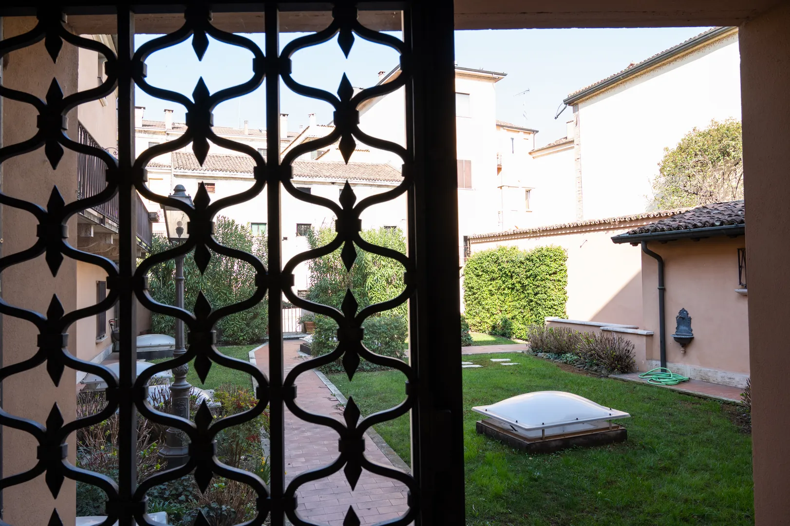 Il piacevole giardino di via Govi ha un’impostazione moderna e aggraziata, un bel prato curato e tanti arbusti e fiori a punteggiare l’isola verde.