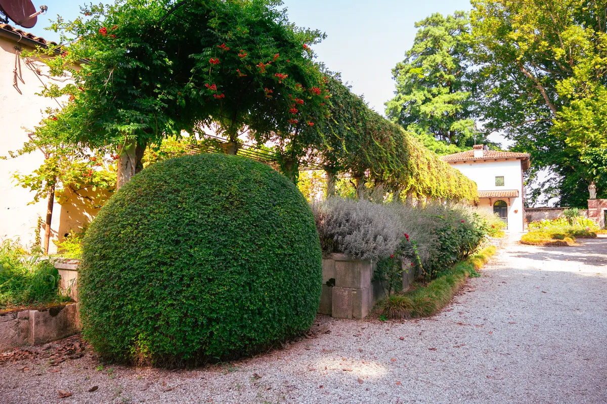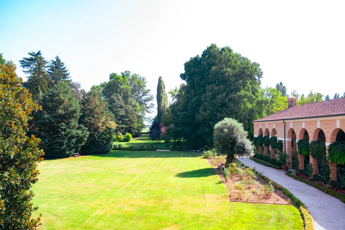 L’impianto romantico, all’inglese, venne ideato nell’Ottocento, per volere di Drusilla Dal Verme, vedova dell’ultimo esponente della famiglia Loschi. La nobildonna brillava per intelligenza e intraprendenza: riformulò completamente l’intera possessione agricola, introducendo innovazioni tecnologiche e sperimentando nuovi metodi di allevamento.